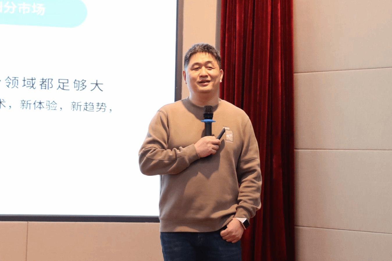宋全业以“乘风破浪,勇创未来——企业数字化营销的新趋势”为主题进行分享。他从市场机会、创业心得及职场感悟三个方面具体讲述了如何把握数字化时代的新趋势。他以自己的职场经历和创业历程为例说明营销4p理论与聚焦战略的重要性,强调现阶段同学们应学好理论知识,为未来职场生活打好基础。
