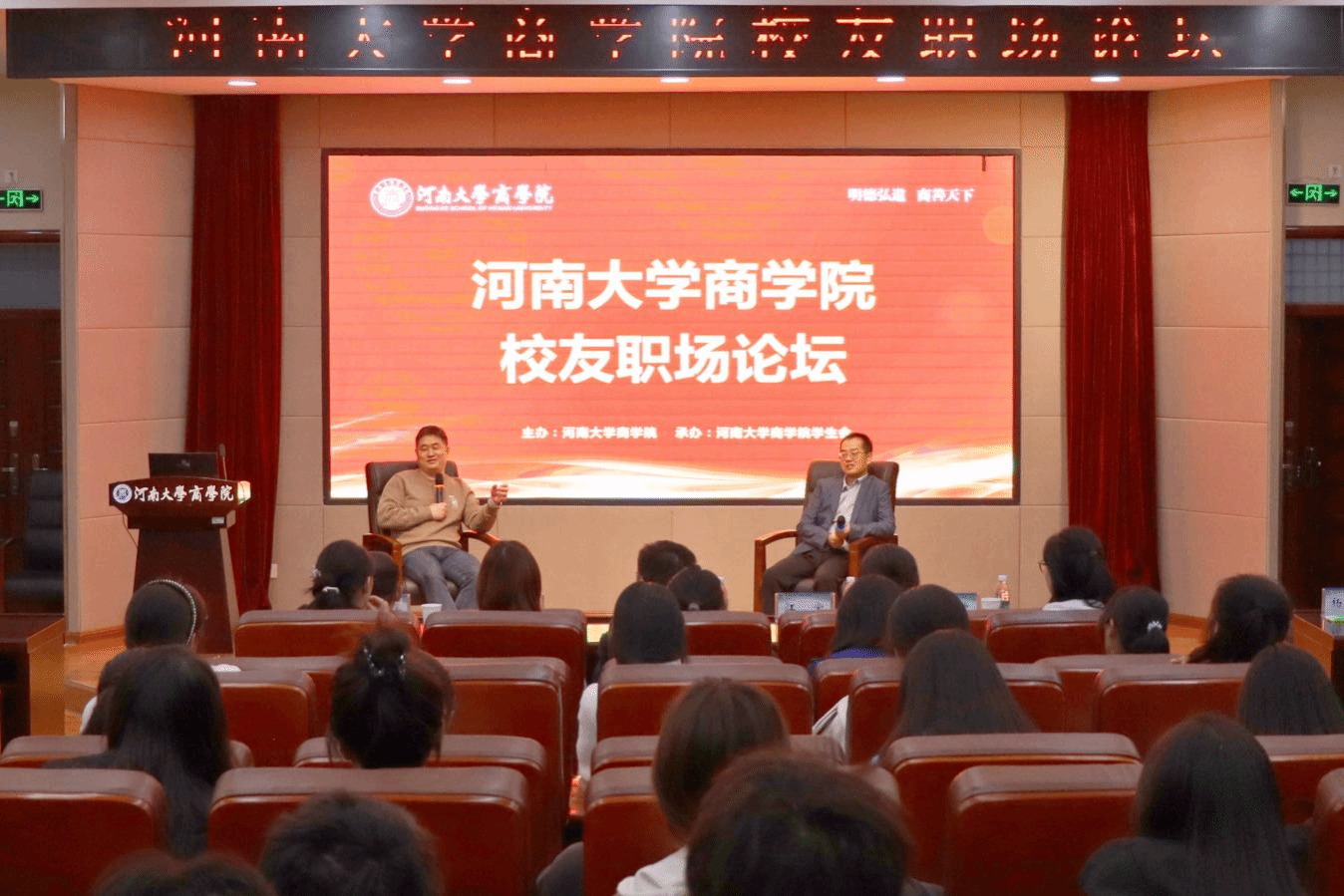 为帮助青年学子解决专业实践和创新创业等困惑,10月26日下午,由商学院学生会承办的商学院第十二期校友职场论坛在学院二楼报告厅举办。本期论坛邀请到了河南大学商学院2000级校友、郑州蚂蚁会企业管理咨询有限公司创始人宋全业和2004级校友、河南拙勤企业管理咨询有限公司创始人江宝主讲。商学院党委书记左辞波、副院长李耀、学生工作负责人马欢欢、校友工作负责人韩焕法、河南省物流与区域经济发展软科学研究基地副主任杨洁辉以及团委负责人聂大开出席论坛。本期论坛由马欢欢主持。