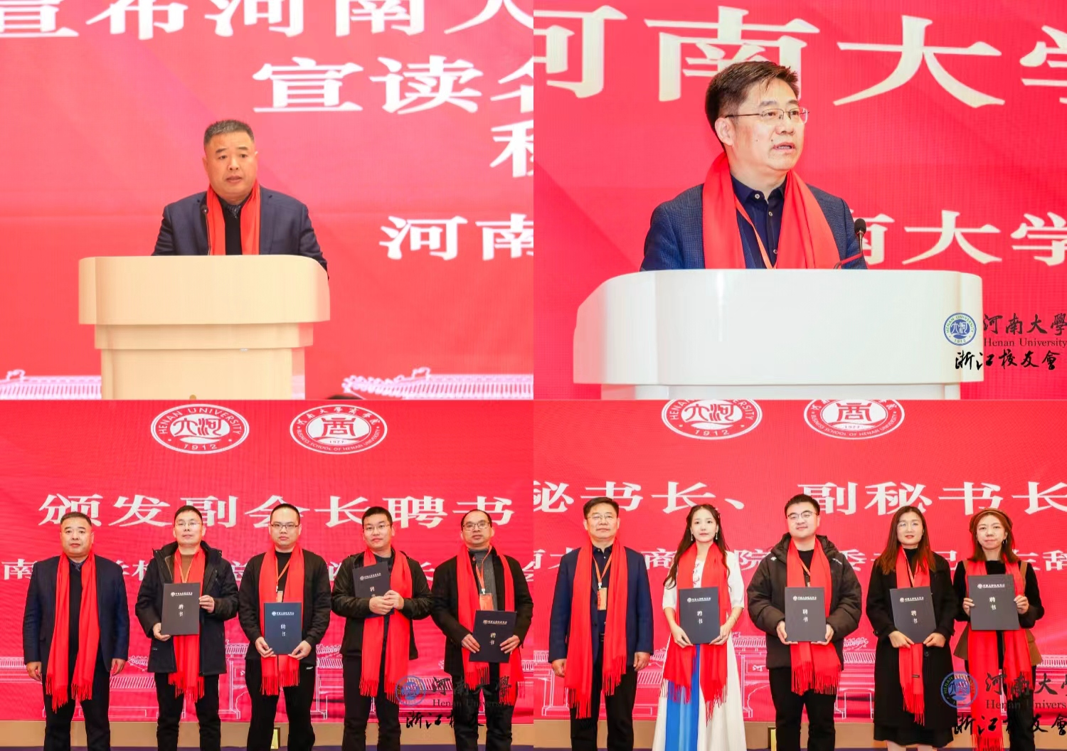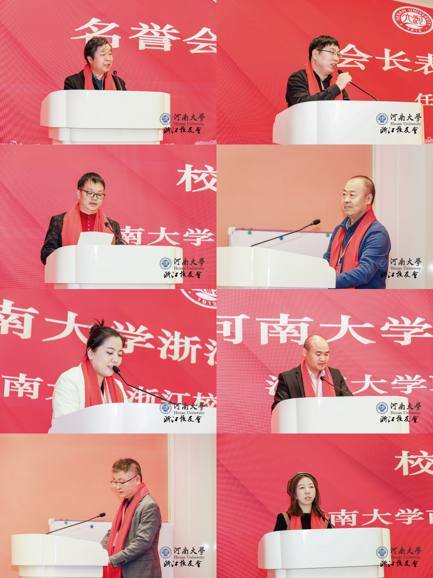 郝玉贵作为名誉会长表态发言。他回顾了自己在河南大学的工作经历,介绍了在浙校友之间的联络与互动情况,分享了对分会工作的设想。他表示,将继续发挥好纽带作用,团结好在浙广大校友,传承和发扬河大精神,整合和用好资源优势,争取为母校、母院和各位校友的发展做出更多、更大的贡献。会长任刚要感谢母校对自己的培养和事业发展的支持,表示将铭记母校的恩情,加强与学院、其他校友会之间的联系,连接供给与需求,服务好母校人才培养和学生的实践就业等多方面的工作,促进校友与母校的共赢发展。校友代表秦文坦、陈海友、陈婧先后发言。他们分享了记忆中的温情时刻,感恩母校、母院的培养,表示将努力做好表率,以实际行动继续彰显“铁塔牌”风采。