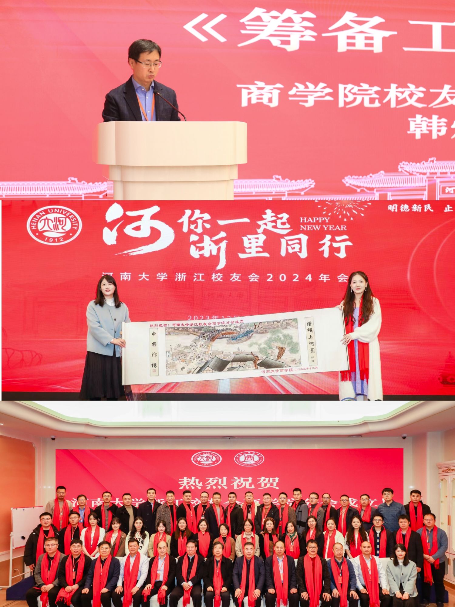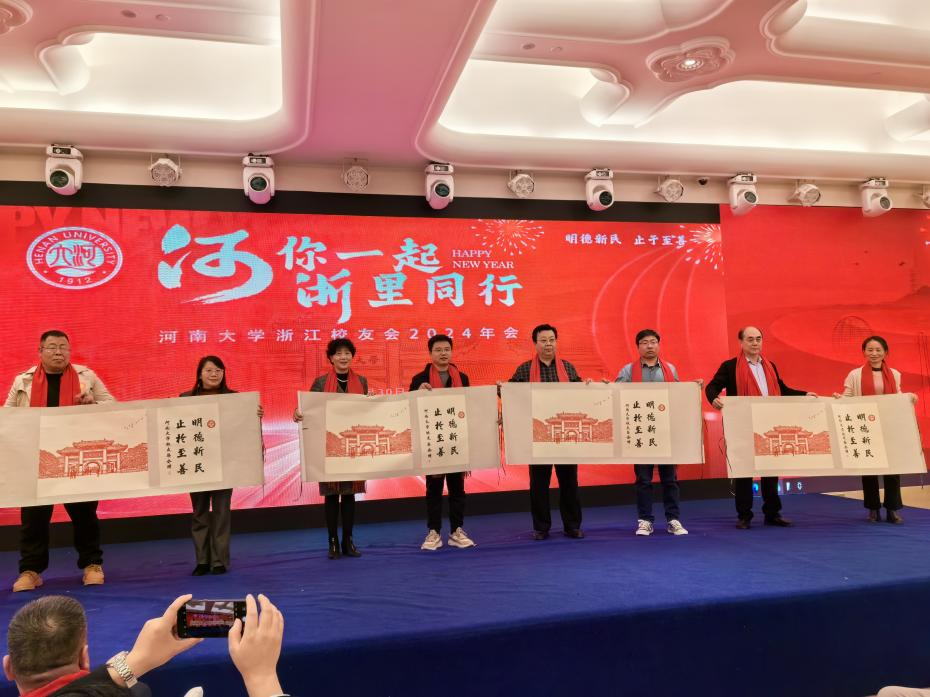 会后,左辞波带领学院教师代表,与校友代表一道共同参加主题为“河你一起 浙里同行”的河南大学浙江校友会2024年会。